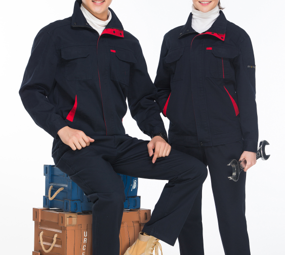 接下來,我們來看一下這款帶有時尚拼接的藏青色工作服。它在袖口和衣襟處采用了卡其色的拼接設計,讓整個工作服看起來更加時尚。同時,它也采用了全棉面料和修身版型,保證了穿著的舒適度和精神度。這款工作服非常適合需要展現(xiàn)個性和時尚感的工作人員。