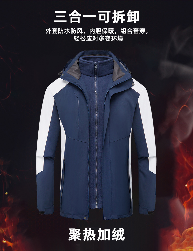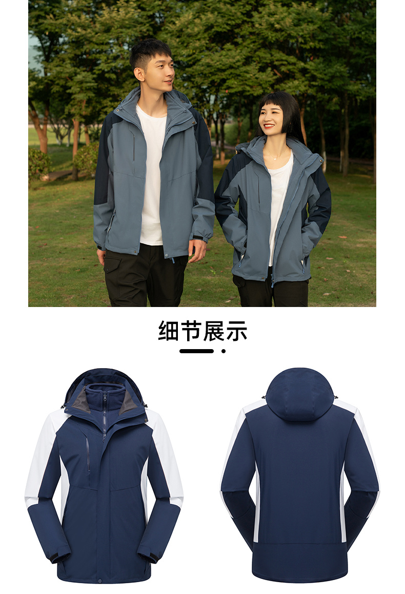 戶外保暖沖鋒衣訂做 男女同款戶外三合一沖鋒衣 定制咨詢電話:021-69131259