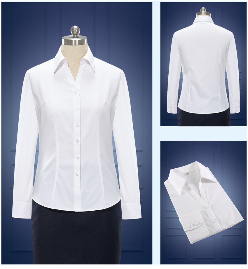 女士長(zhǎng)袖白色V領(lǐng)職業(yè)裝襯衫定制 樣品圖