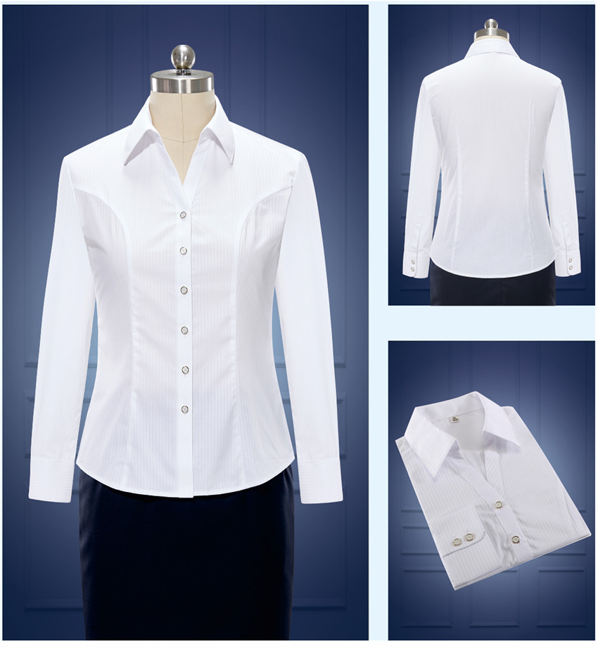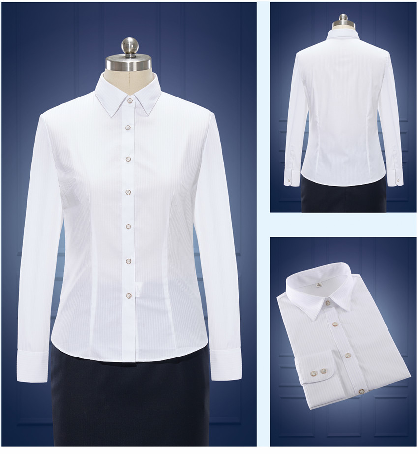 女士長(zhǎng)袖白色職業(yè)裝襯衫定制 樣品圖