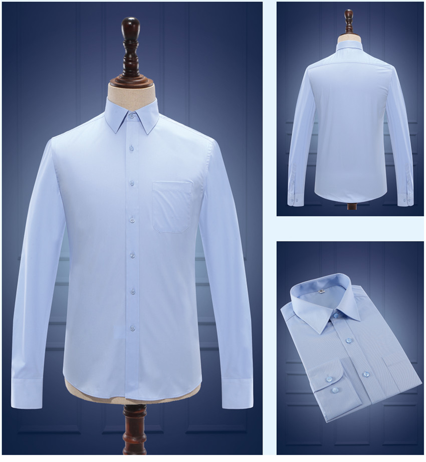 男士藍(lán)色長(zhǎng)袖商務(wù) 襯衫定制 樣品圖
