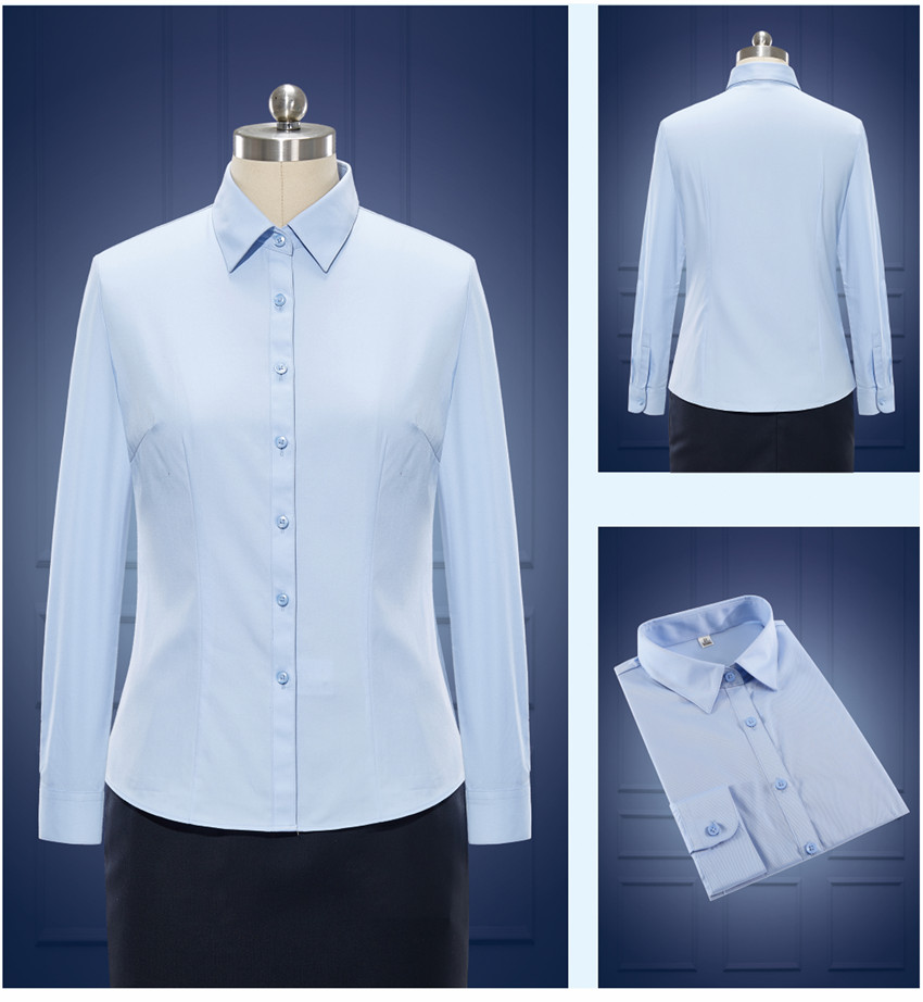 女士長(zhǎng)袖藍(lán)色職業(yè)裝襯衫定制 樣品圖