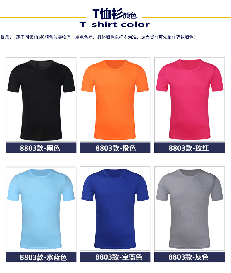 | 產(chǎn)品名稱:速干圓領(lǐng)T恤衫定做 | 型號:8803 |